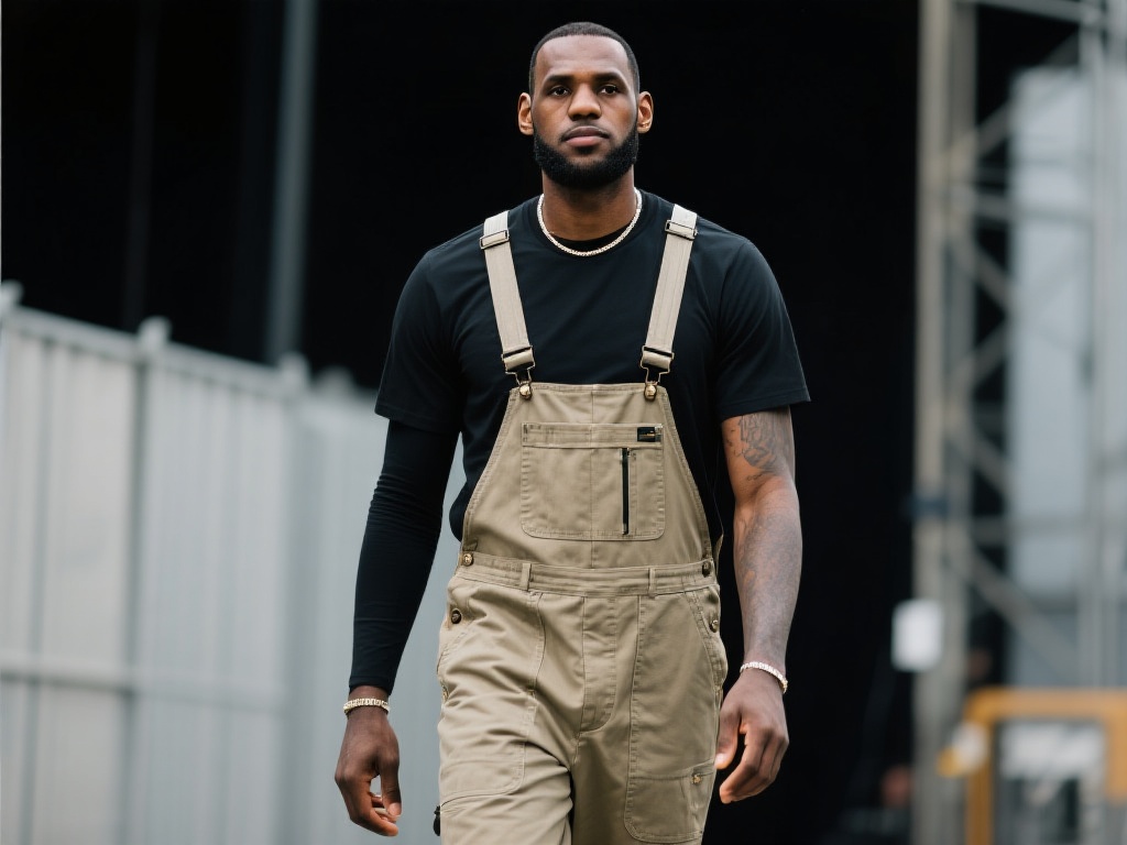 詹姆斯身穿背带裤,脚踩潮流黑粉AF1帅气亮相球员通道